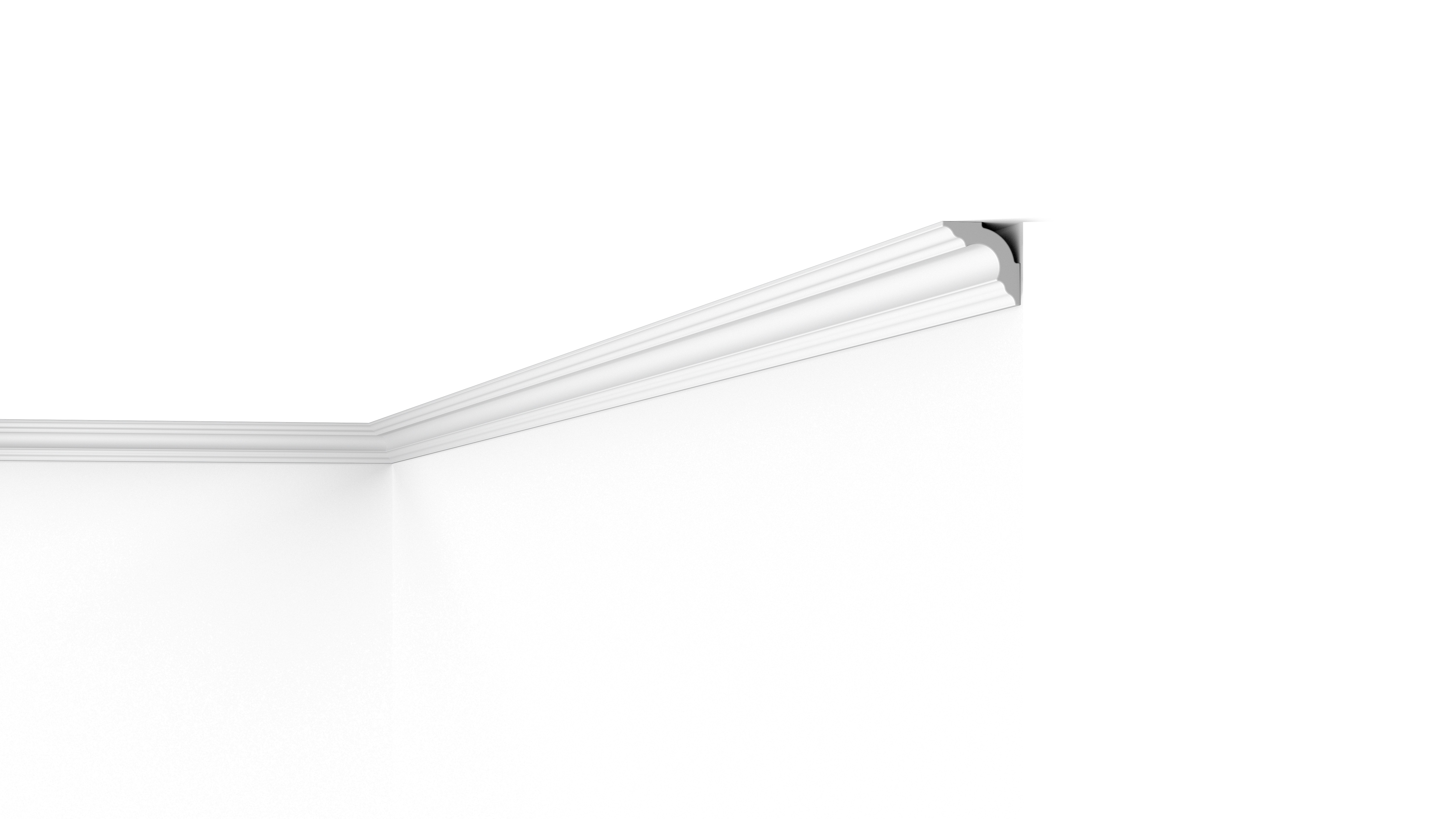 Die klassische lineare Deckenleiste verleiht einem Raum Struktur. Die A3 NOMASTYL® Deckenleiste ist ein professionelles Element, das aufgrund seiner geringen Größe kaum Platz an der Wand und Decke beansprucht. Der lineare Verlauf, in Kombination mit der konkaven Kehle, erzeugen einen leichten Schattenwurf. Polystyrol ist feuchtigkeitsbeständig, so dass die A3 auch für feuchte Umgebungen wie Badezimmer und Küchen geeignet ist.