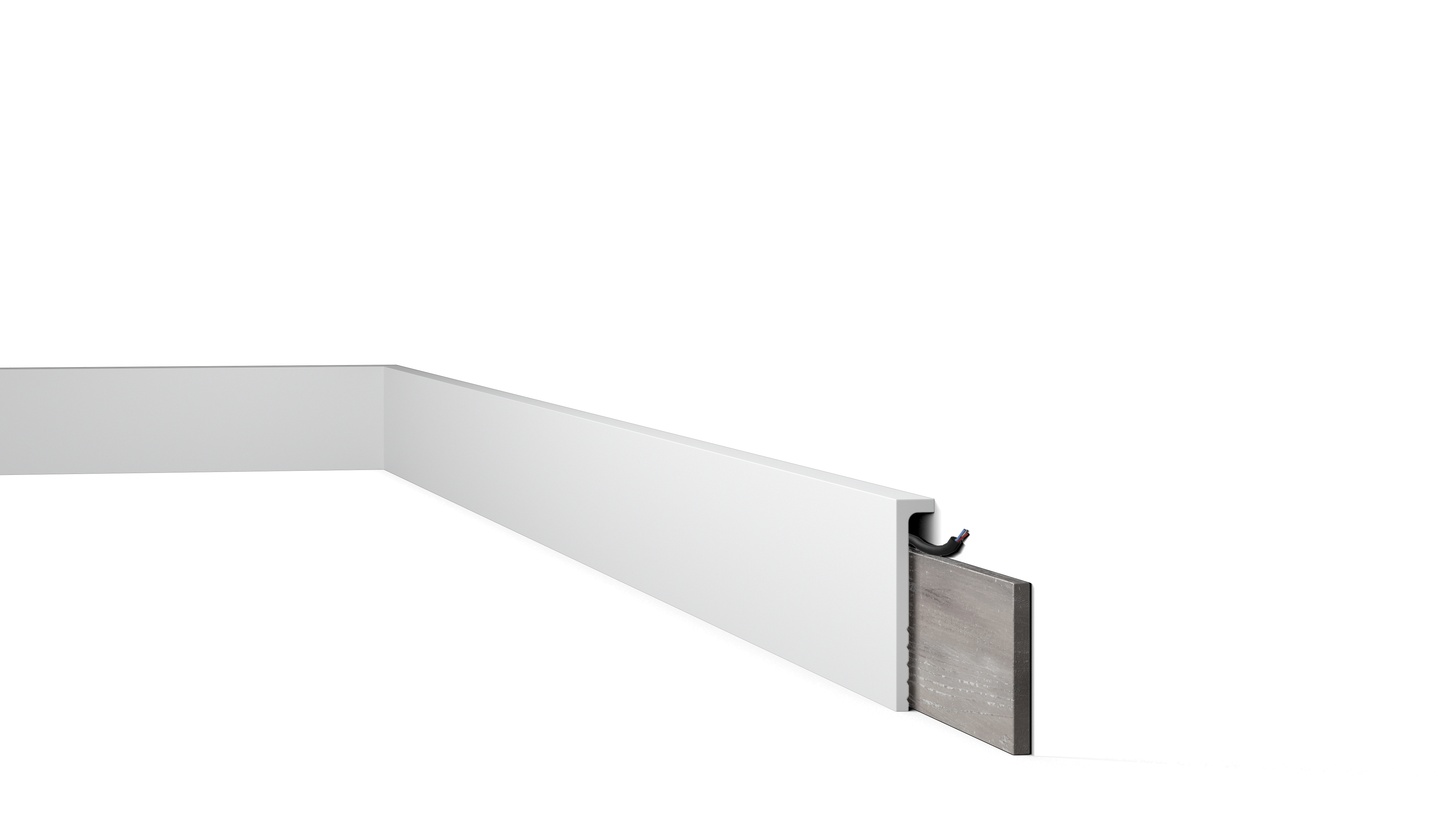 Mit direkter oder indirekter Beleuchtung kombinierbare Decken-, Wand- und Sockelleisten sowie Wanddekoraktionselemente.