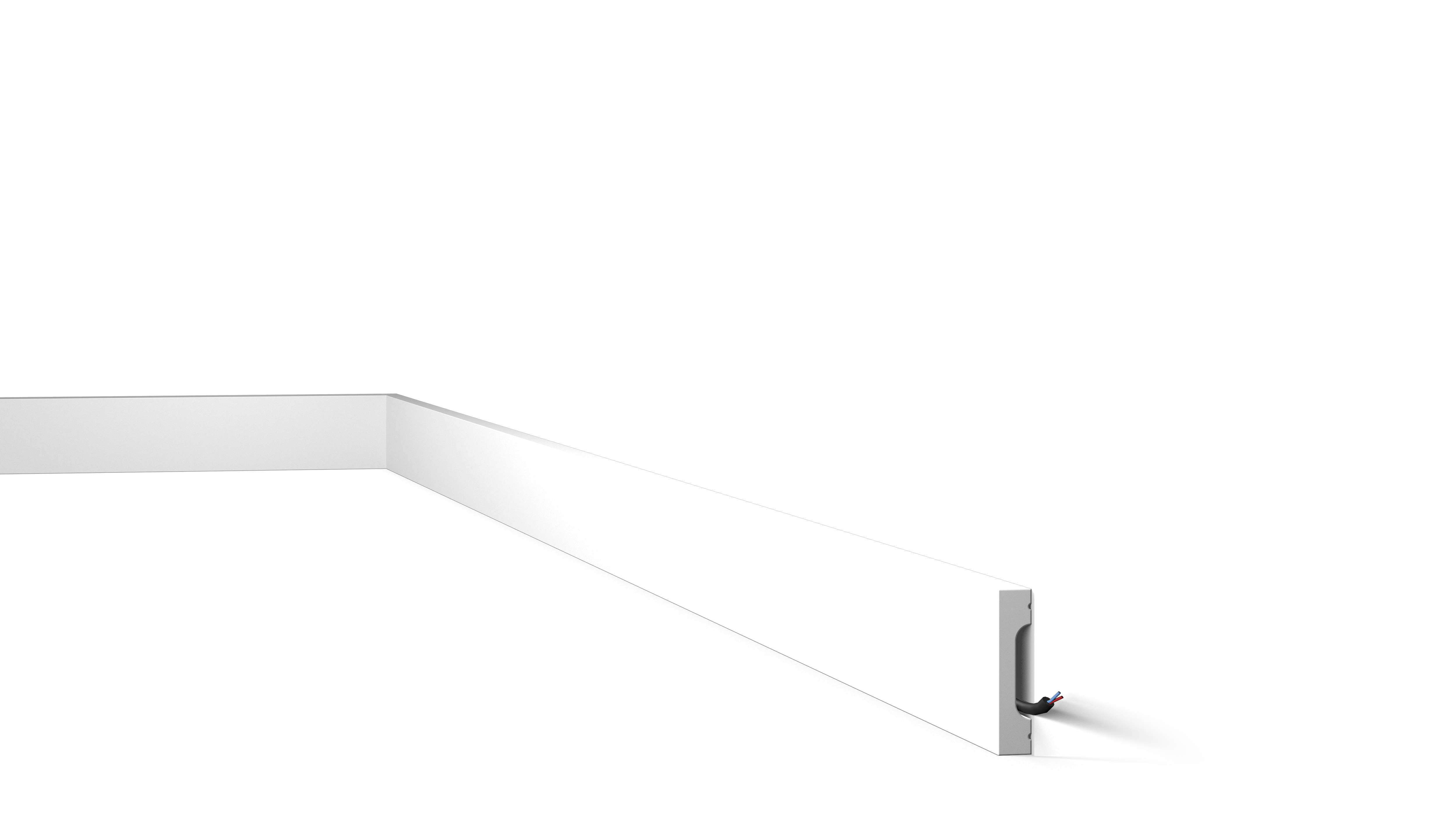 Die Sockelleiste FD7S WALLSTYL® kann sowohl Verkabelungen als auch unschöne Übergänge zwischen Böden und Wänden diskret abdecken. Die einfach zuzuschneidende und zu verklebende FD7S wird vorgrundiert und streichfertig geliefert. Das wasserfeste Material ist ideal für feuchte Umgebungen wie Bars, Küchen und Bäder.