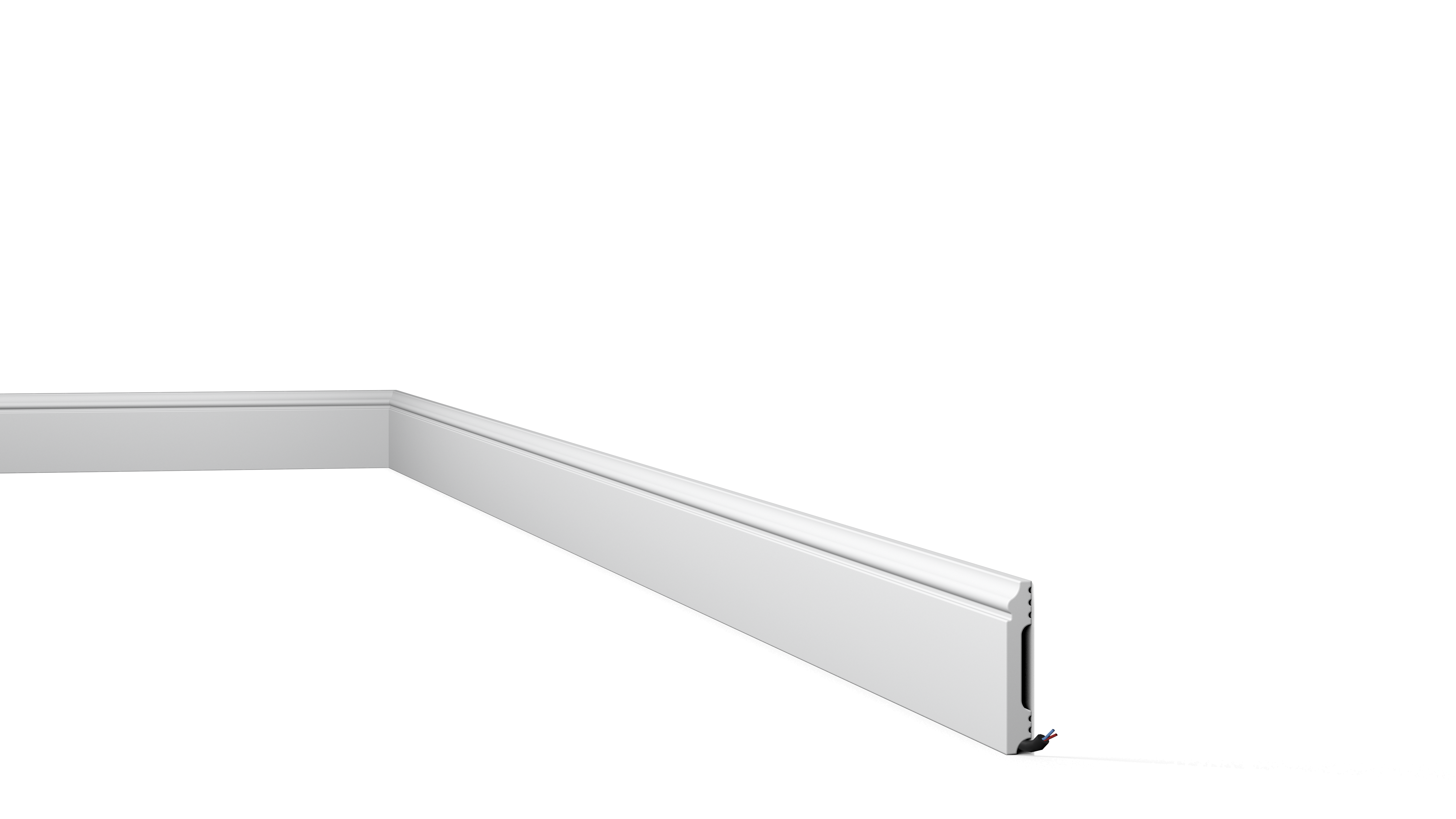 Auf der Rückseite der FL1 WALLSTYL® gibt es genügend Platz, um Kabel und unansehnliche Übergänge zwischen Wand und Bodenbelag zu verbergen. Das hochwertige und stoßfeste Polystyrol ist einfach zu schneiden und leichtgewichtig. Die Verlegung ist schnell und präzise und verspricht ein gelungenes Ergebnis. Die Sockelleiste FL1 WALLSTYL® ist grundiert und bereit für die Endbeschichtung. Auf Wunsch kann sie in zahlreichen RAL oder NCS-Farben bestellt werden (ab 1000 lfm).