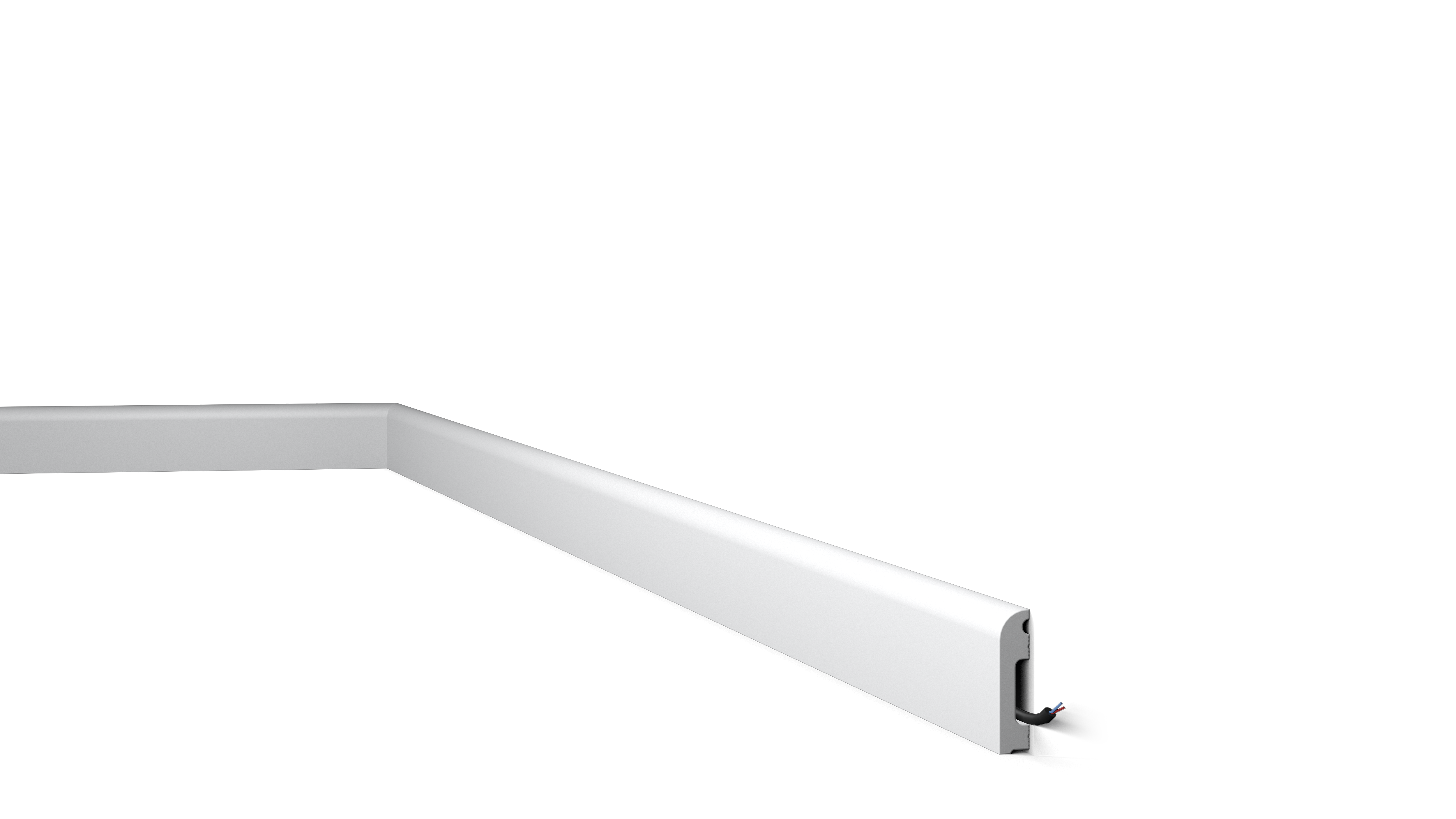 Mit direkter oder indirekter Beleuchtung kombinierbare Decken-, Wand- und Sockelleisten sowie Wanddekoraktionselemente.