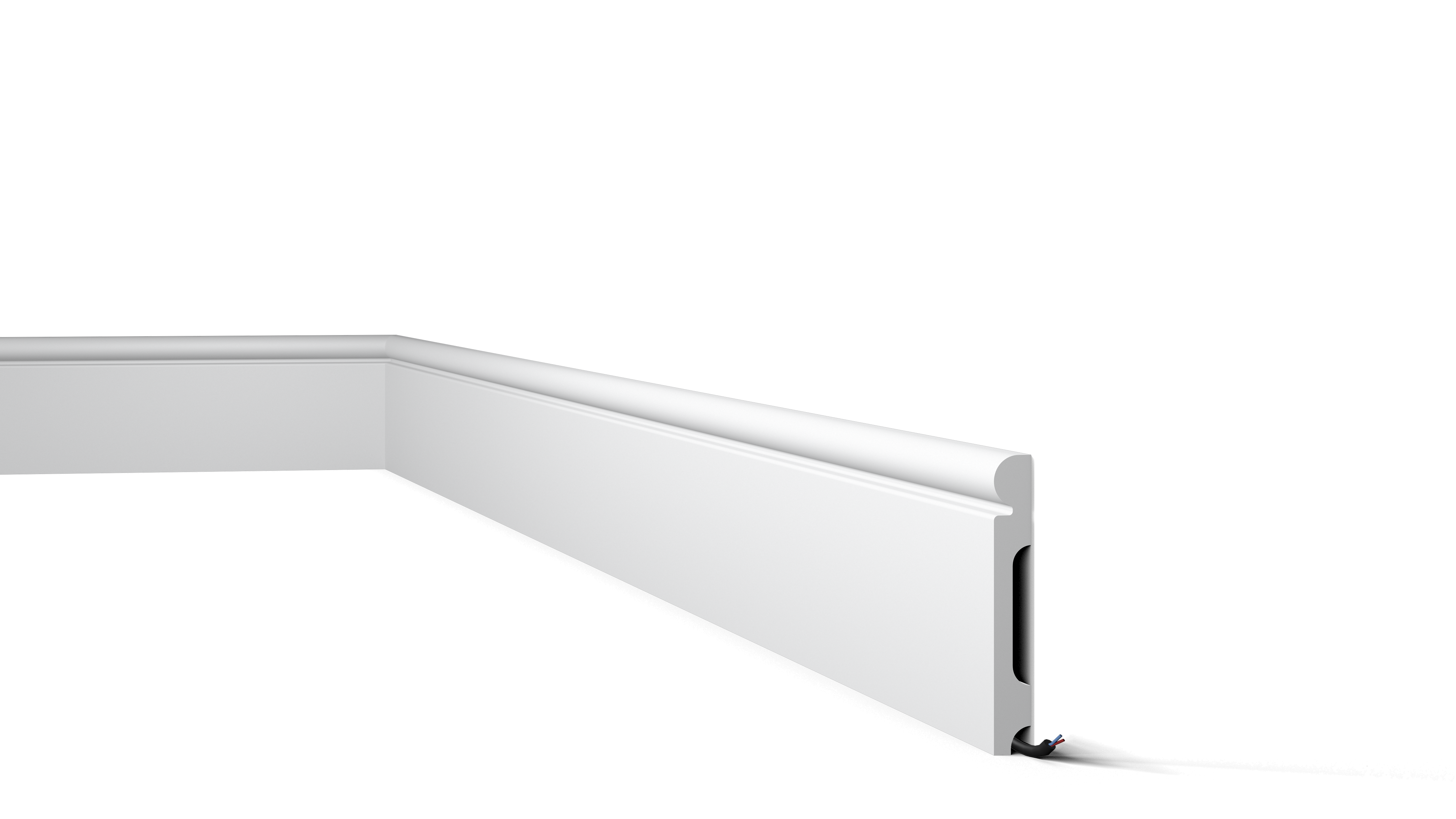 Die FL4 WALLSTYL® ist grundiert und bereit für die Endbeschichtung in jeder beliebigen Farbe. Die Sockelleiste lässt kleine Kabel oder unschöne Übergänge verschwinden. Aufgrund ihres wasserfesten und langlebigen Materials ist sie ebenfalls bestens geeignet für Räume mit hoher Luftfeuchtigkeit, wie Bars, Küchen oder Badezimmer.