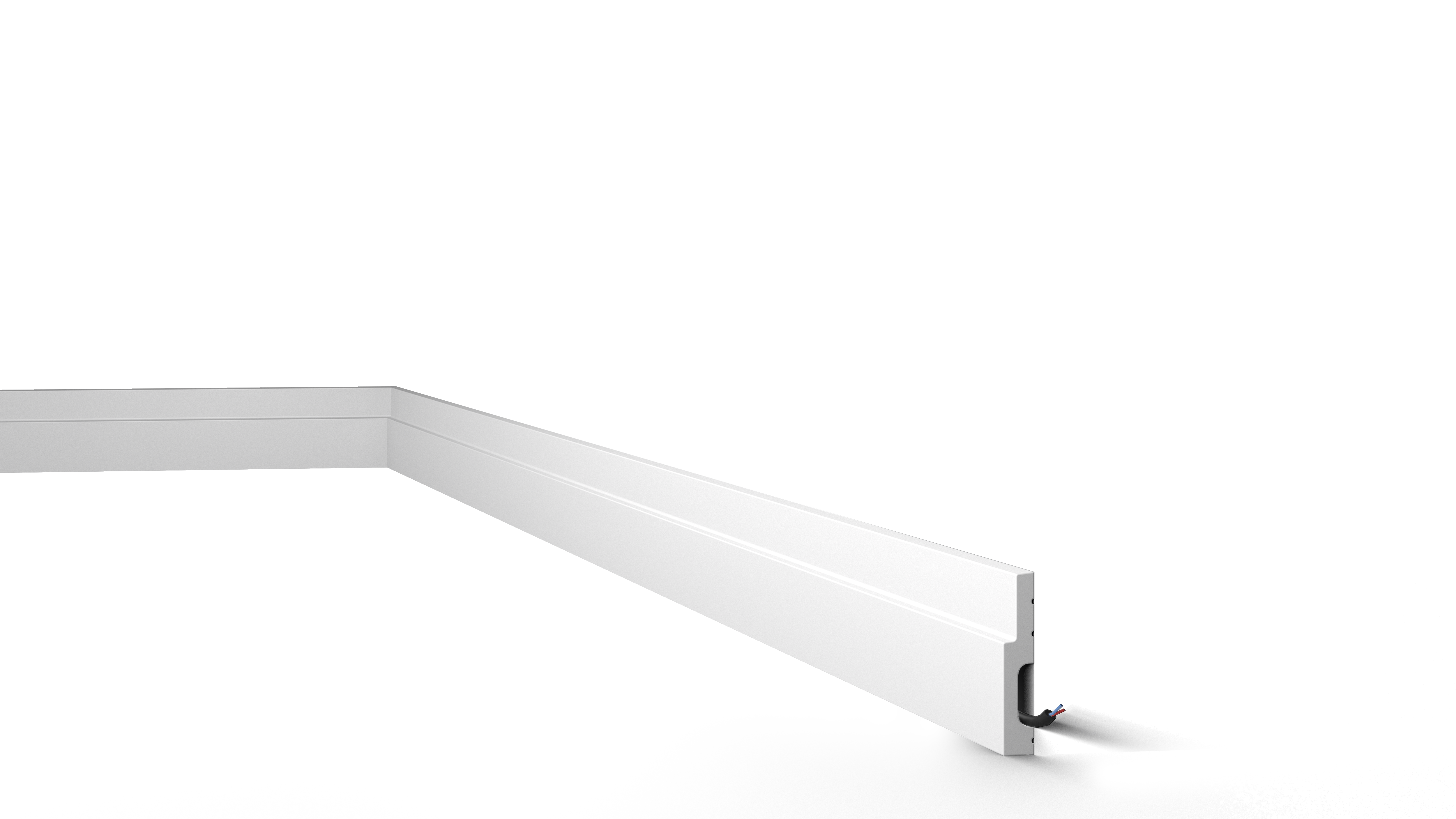 Mit direkter oder indirekter Beleuchtung kombinierbare Decken-, Wand- und Sockelleisten sowie Wanddekoraktionselemente.