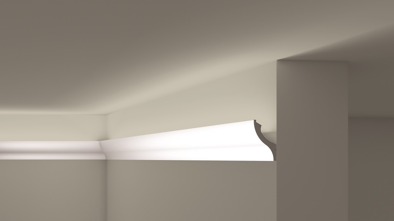In Verbindung mit einer indirekten Beleuchtung ist auf der Rückseite des Profils ein Freiraum für die Befestigung der LED-Leisten vorgesehen. Ein grauer Kern macht das IL13 WALLSTYL® für Licht undurchlässig, so dass das Licht in eine Richtung gebündelt werden kann. Das Profil lässt sich leicht zuschneiden und an seinem Bestimmungsort verkleben. Außerdem ist es bereits für den letzten Farbanstrich vorgrundiert.