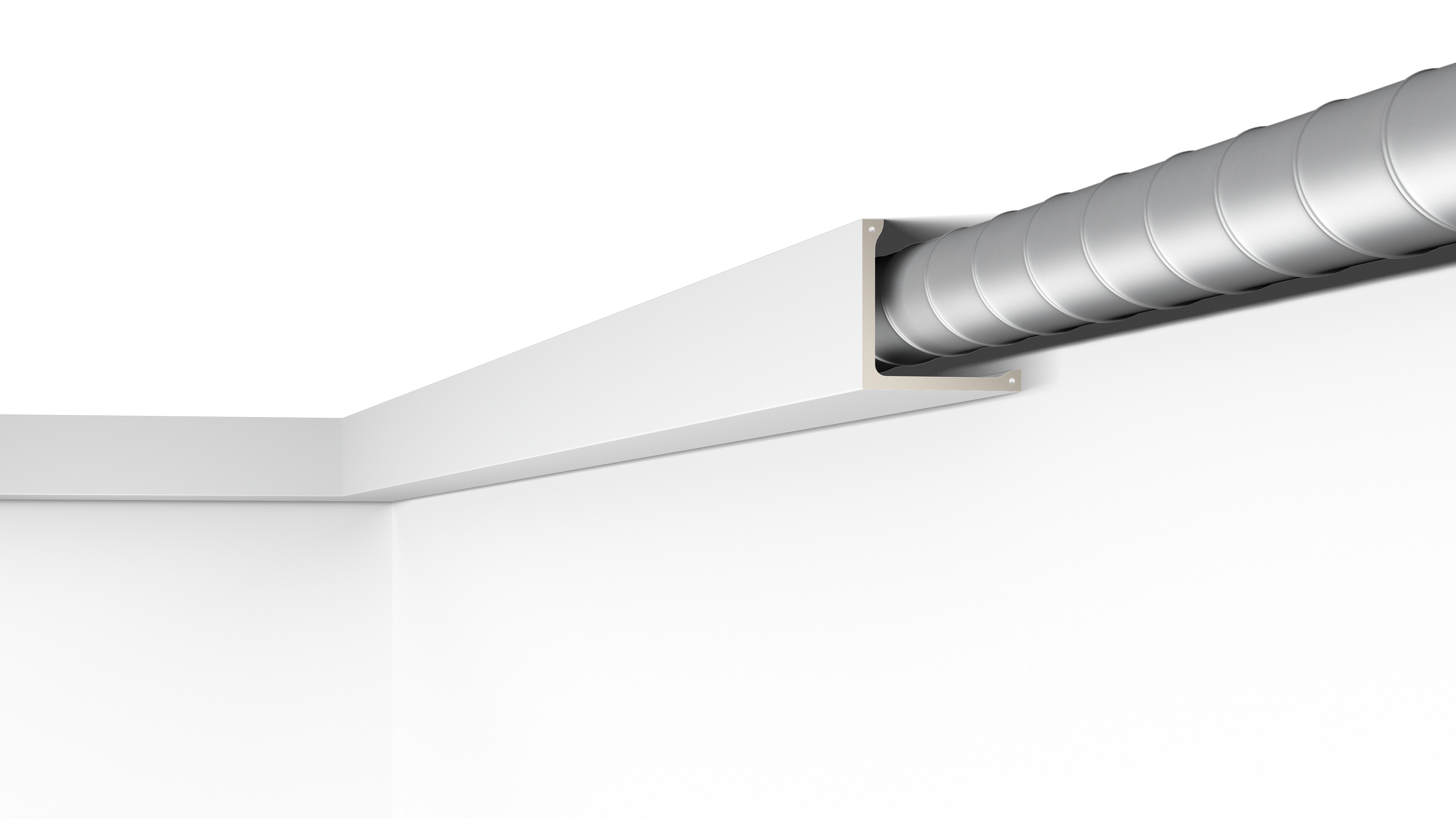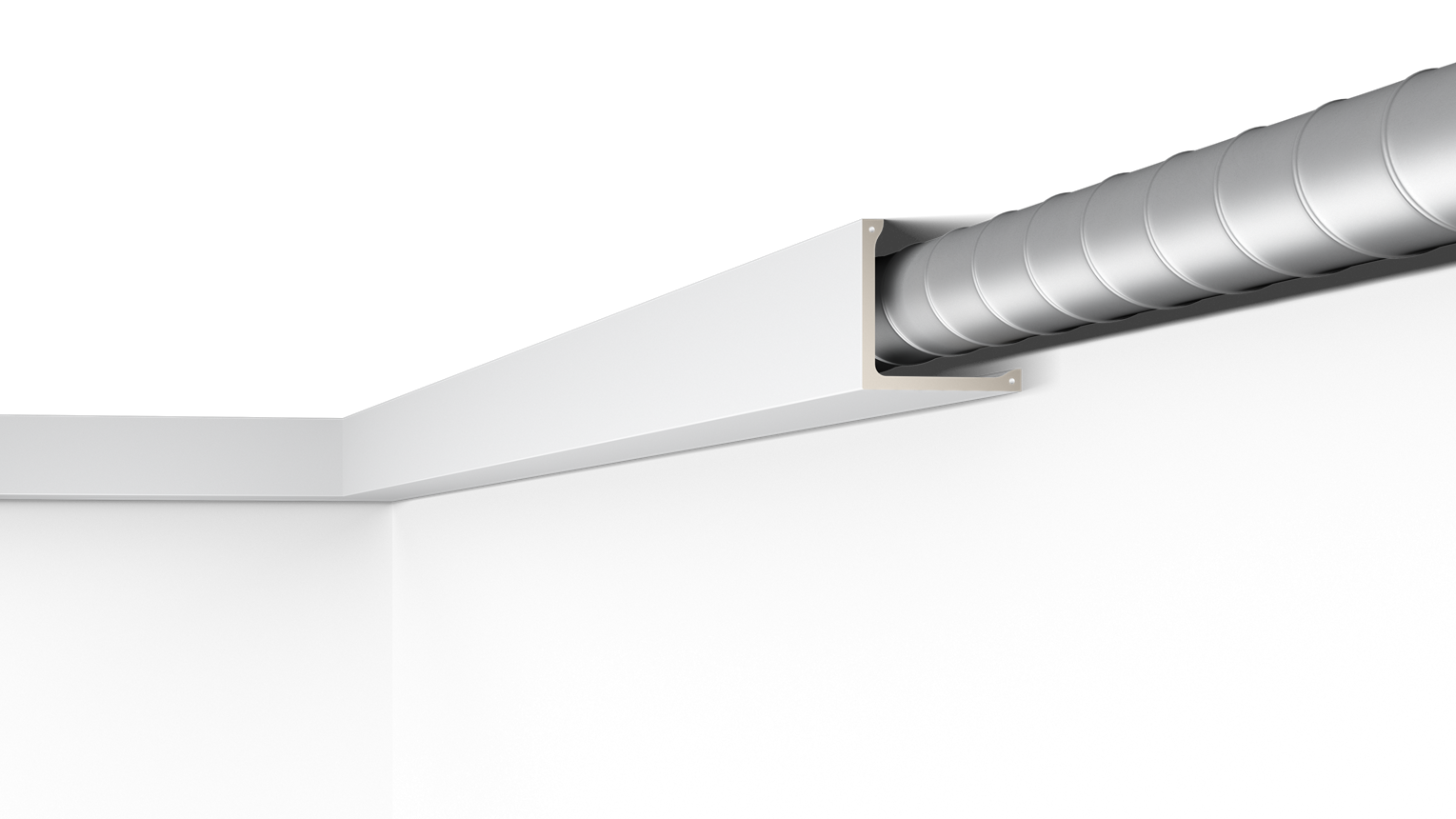 Mit direkter oder indirekter Beleuchtung kombinierbare Decken-, Wand- und Sockelleisten sowie Wanddekoraktionselemente.