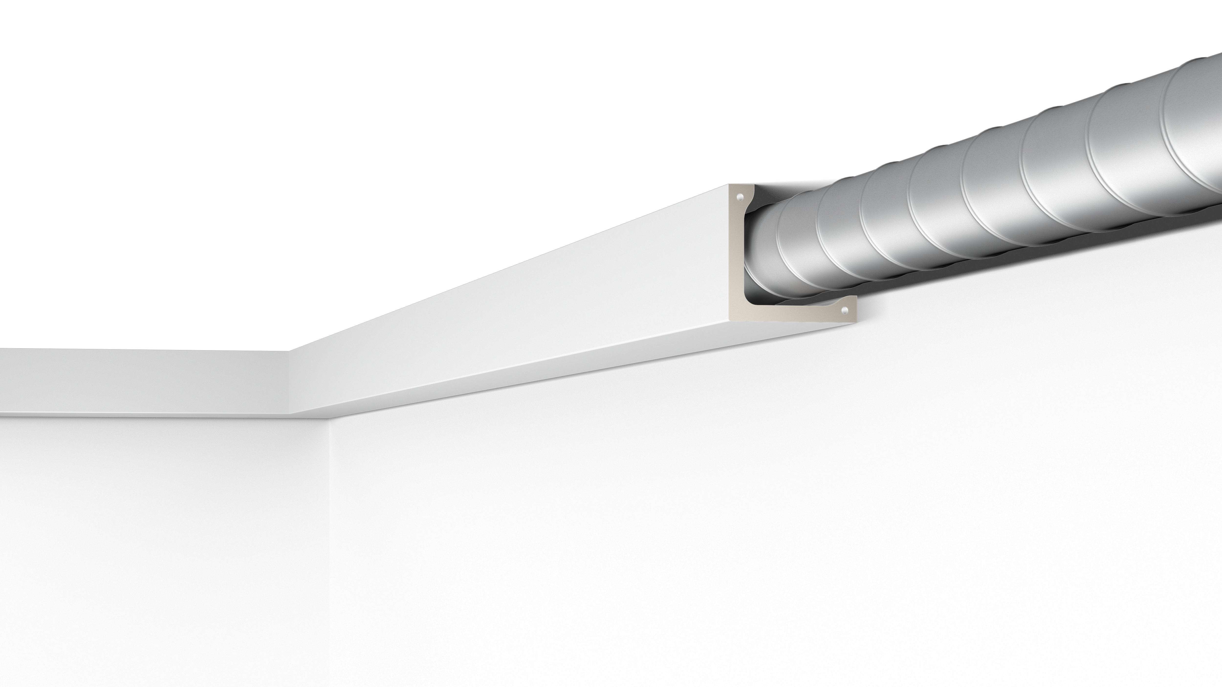Hinter der L4 Leiste ist genug Platz, um Leitungen, direkte LED-Beleuchtung oder auch größere Komponenten wie Lüftungen zu verbergen. Die L4 ist leicht und muss nur aufgeklebt werden. Die L4 ist werkseitig grundiert und muss nur noch endbeschichtet werden.