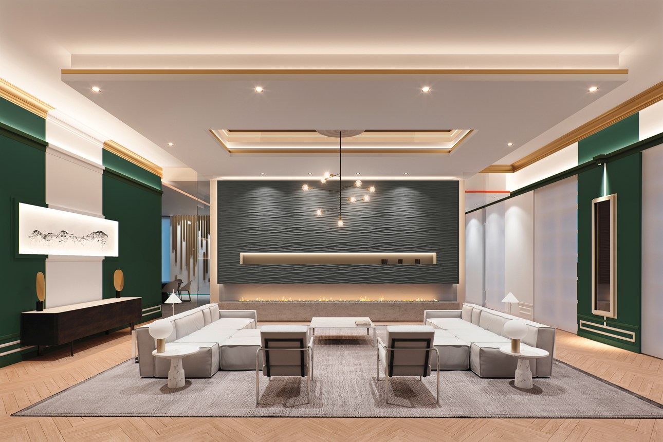 Mit direkter oder indirekter Beleuchtung kombinierbare Decken-, Wand- und Sockelleisten sowie Wanddekoraktionselemente.