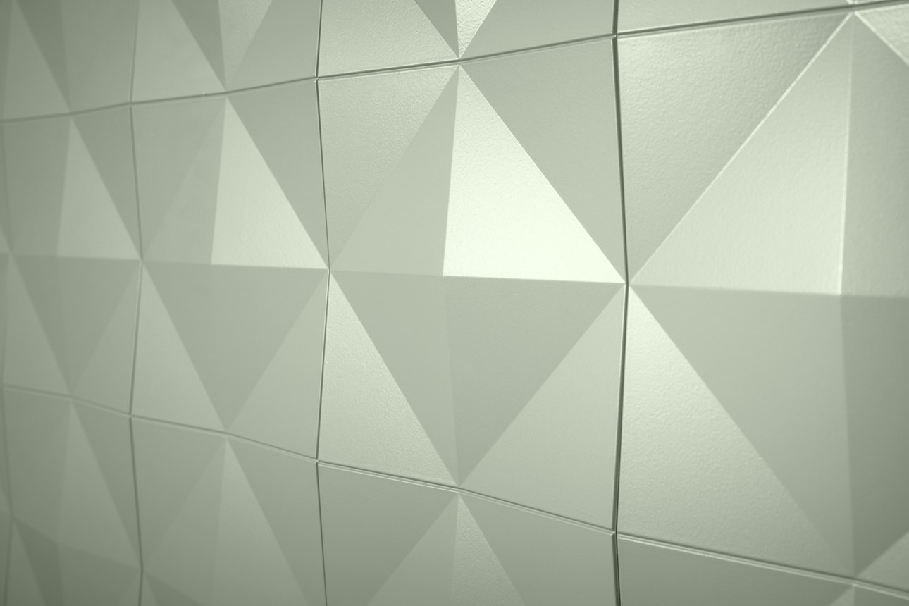 Das PYRAMID-Wandpaneel ist dank der werkseitig aufgetragenen Grundierung sofort streichfähig. Es wird empfohlen, Dispersionsfarben auf Wasserbasis, Farben auf Acrylat- oder Polyurethanbasis oder Farben auf Alkydharzbasis zu verwenden. Die Wandpaneele können einfach mit ADEFIX® PLUS-Kleber befestigt werden.