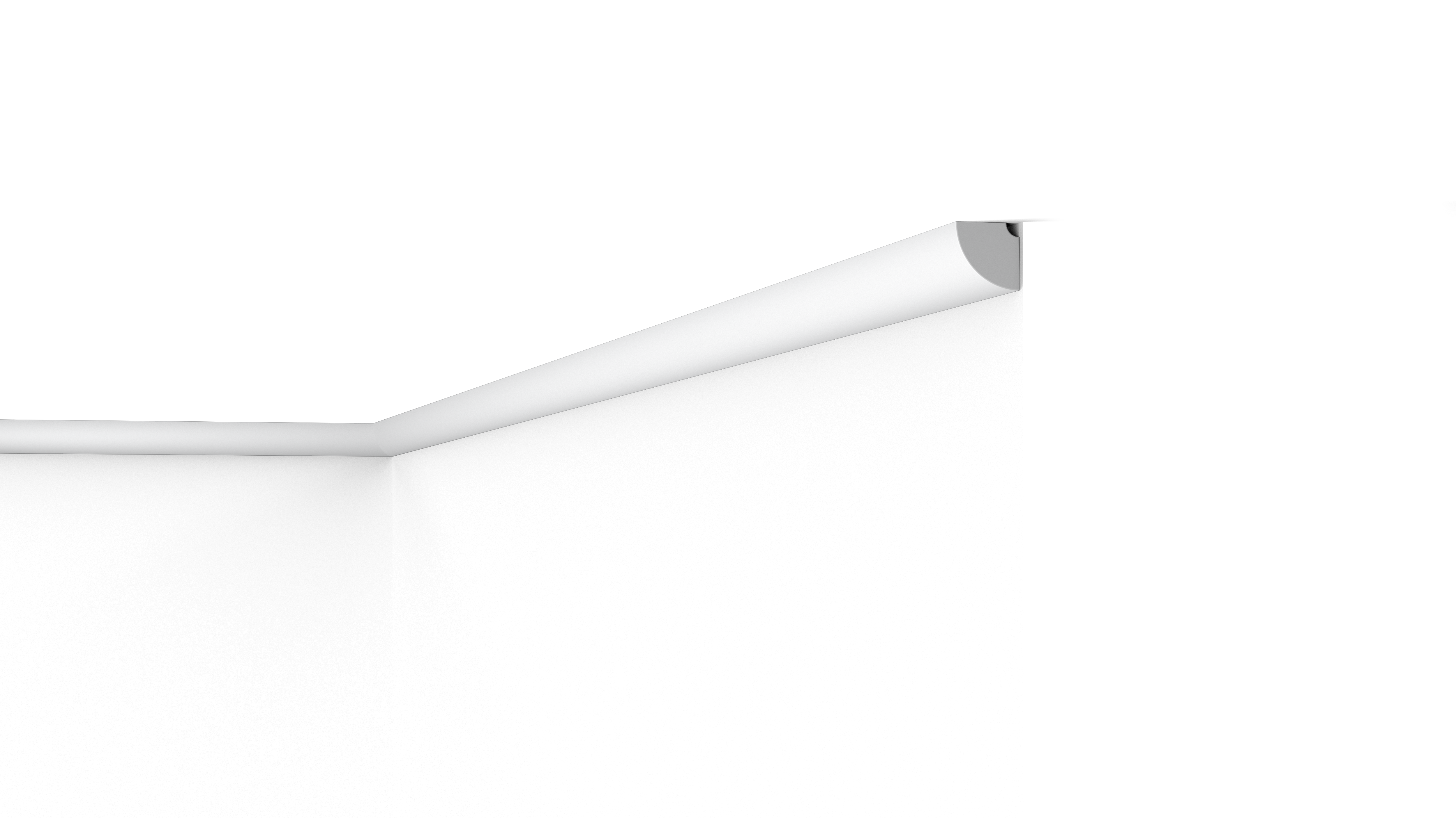 Dieses runde Profil schafft einen weichen und fließenden Übergang zwischen Wand und Decke. Die QR NOMASTYL® Deckenleiste ist minimalistisch, vielseitig einsetzbar und für die meisten Einrichtungsstile geeignet. Die QR ist wasserfest und feuchtigkeitsbeständig und eignet sich für Räume mit hoher Luftfeuchtigkeit wie etwa dem Badezimmer oder der Küche. Die QR ist eines unserer kleinsten Profile.