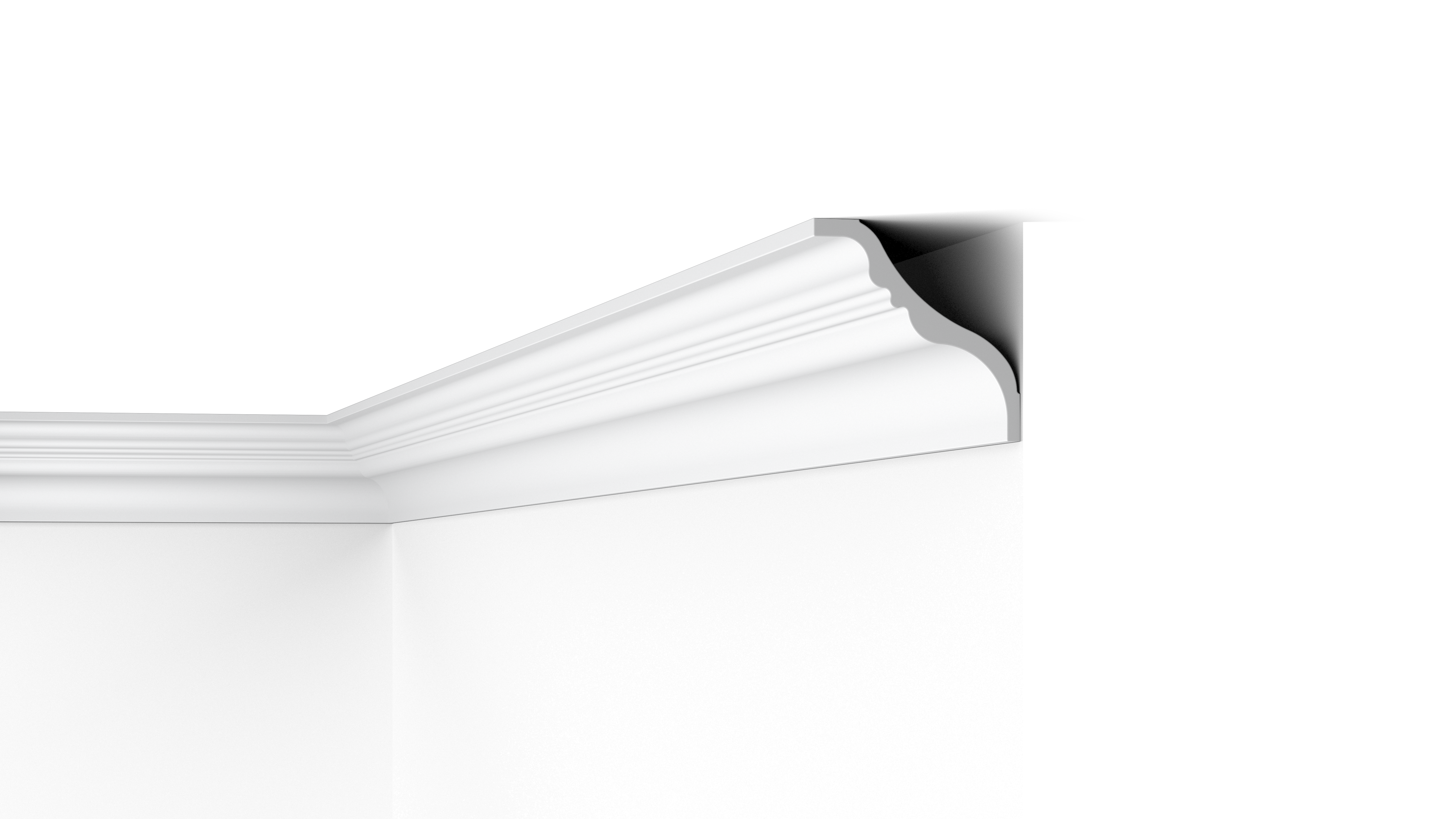 Die große TI NOMASTYL® Deckenleiste vermittelt einen Eindruck von Eleganz und Raffinesse. Eine detaillierte, abgerundete Form verleiht einem Innenraum Struktur und Dimension. Klare Linien und ein glattes Profil erzeugen eine subtile Schattierung, die das Design der TI Deckenleiste unterstreicht.
