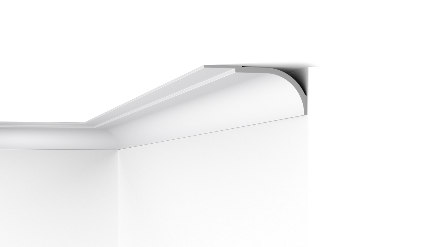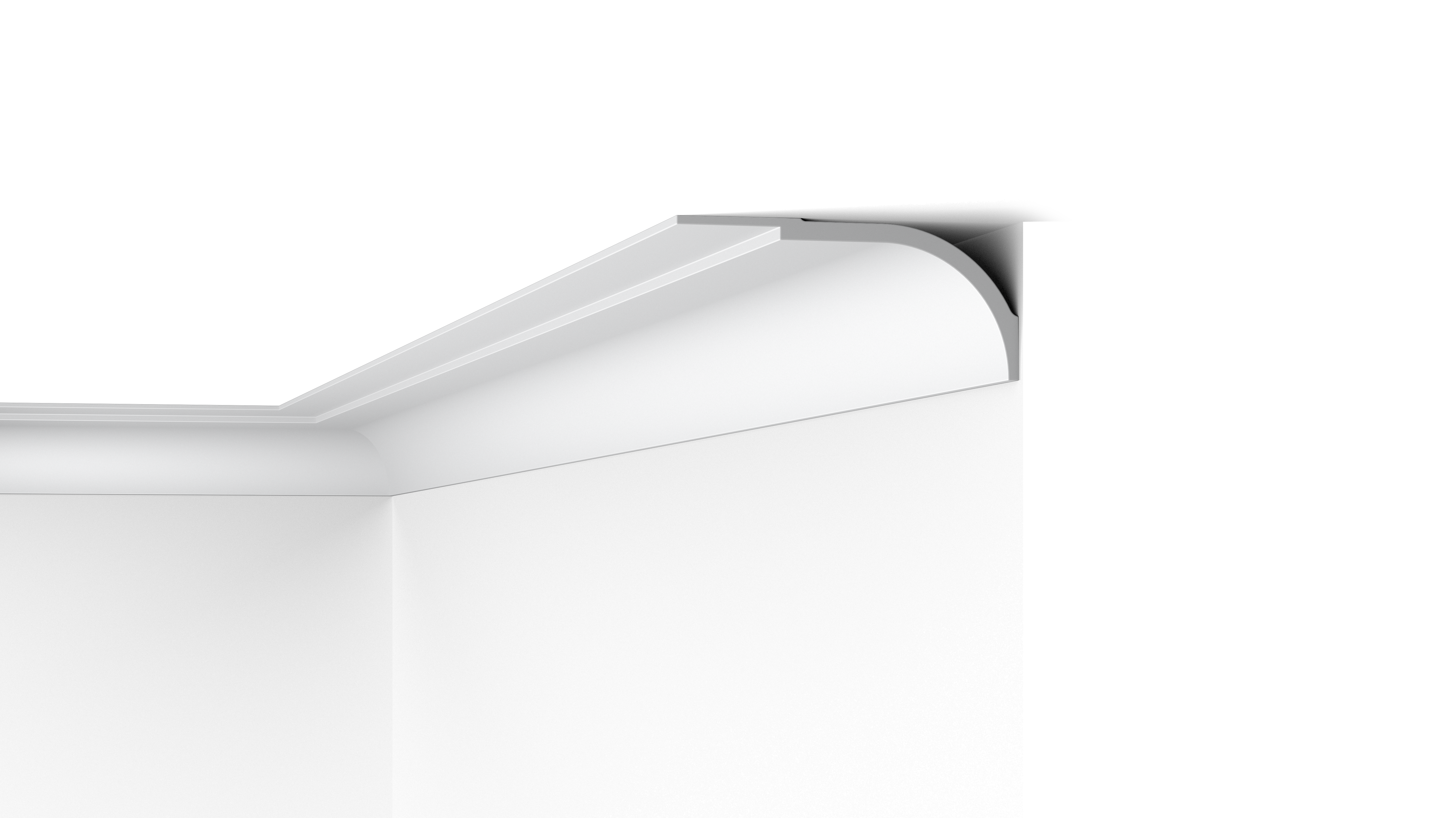 Die WT22 WALLSTYL® Deckenleiste bietet zwei Installationsmöglichkeiten für unterschiedliche Ergebnisse. Die längere Seite an der Decke befestigt, vergrößert optisch die Breite des Raumes. Die lange Seite an der Wand, lässt den Raum höher wirken. Diese Deckenleiste ist schlicht und puristisch und kombiniert dezente Kurven mit geometrischen Kanten.