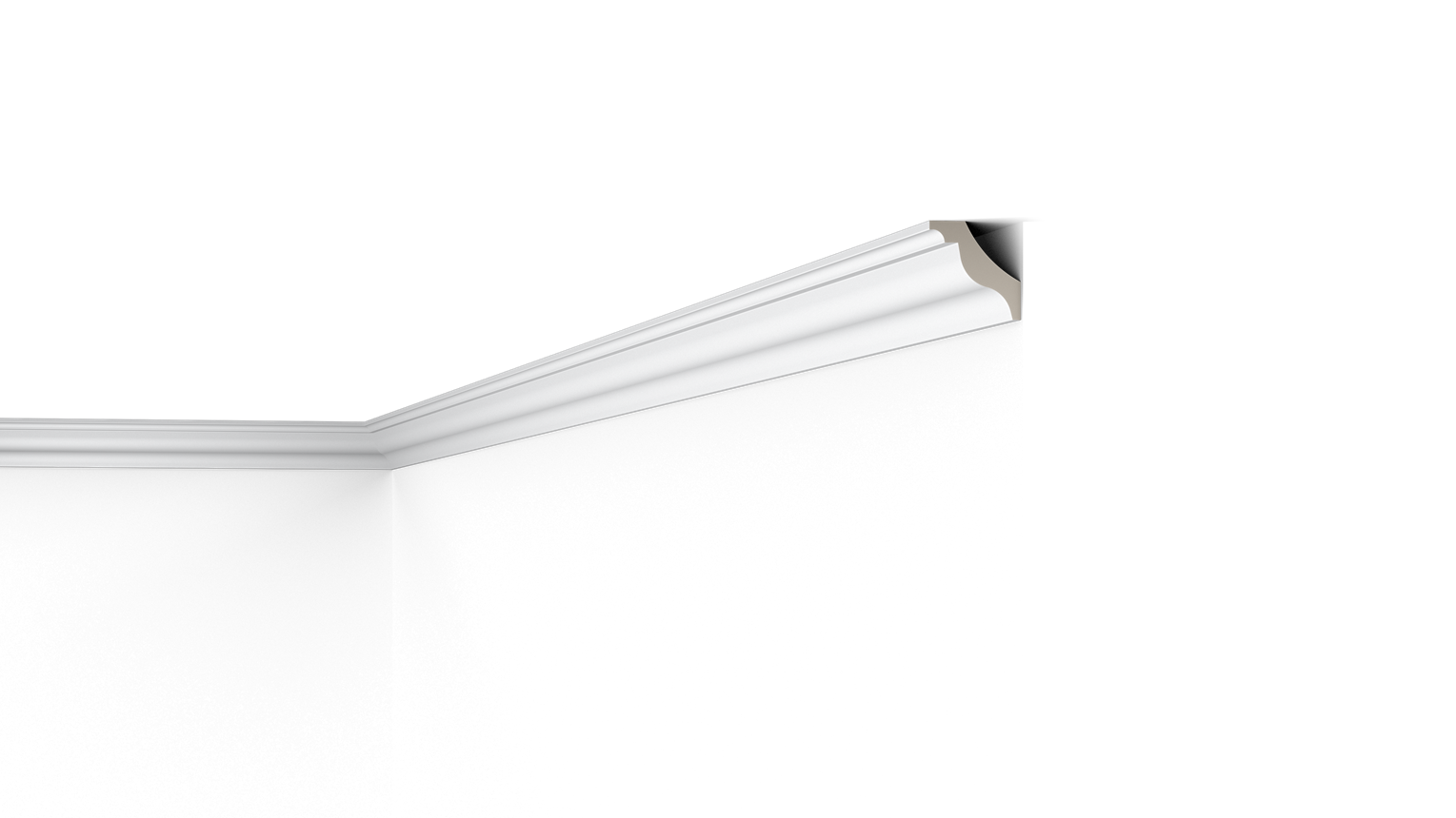 Die Z15 ARSTYL® Deckenleiste ist grundiert für den individuellen Endanstrich. Sie bietet genug Raum, um unsaubere Übergänge, Risse und kleinere Kabel zu kaschieren.