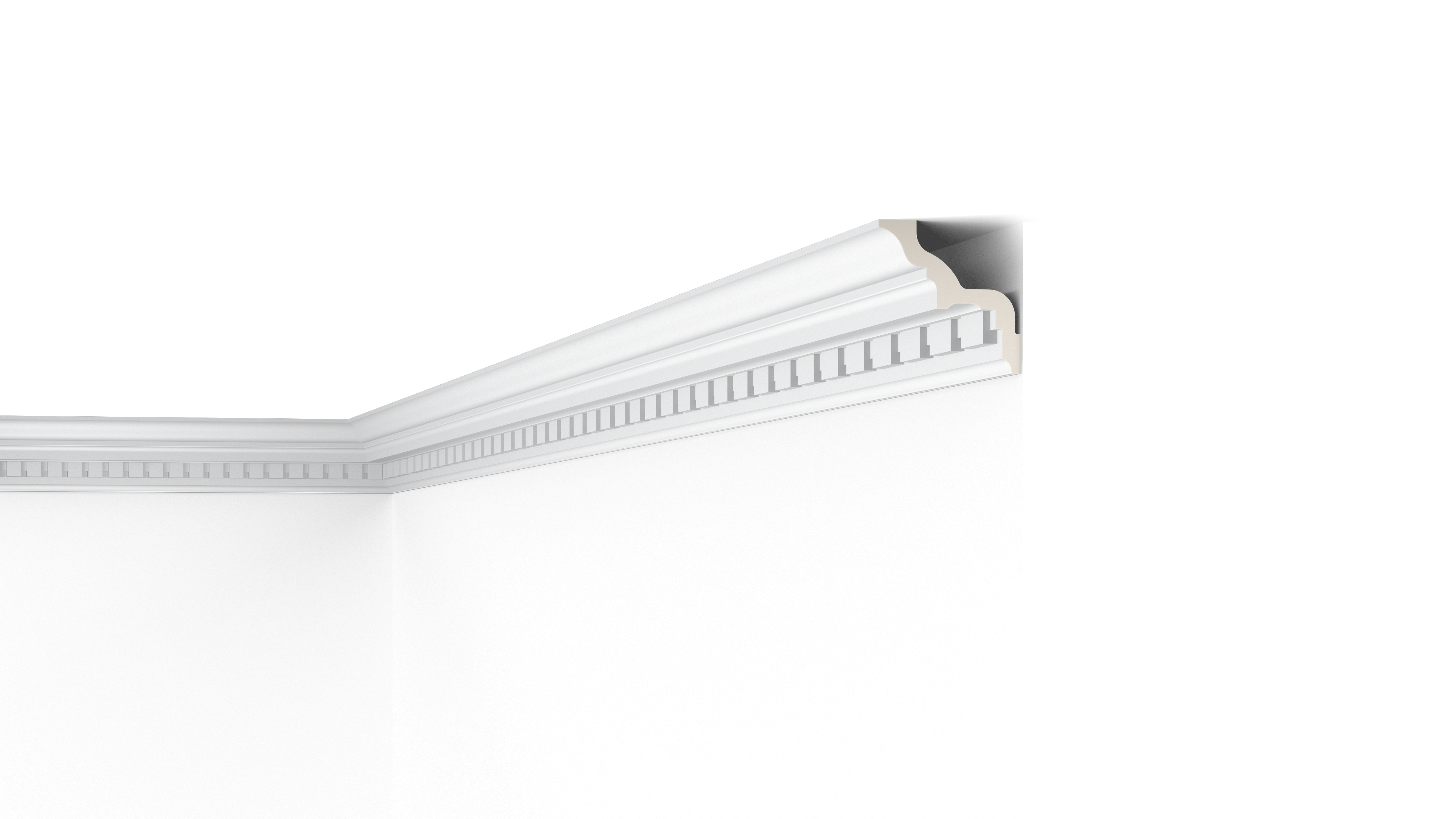 Der Zahnschnittfries der Z2 ARSTYL® Deckenleiste unterstreichen das traditionelle Erscheinungsbild, von Privathäusern und Restaurants. Die Z2 wurde für Innenräume mit klassischem Stil entwickelt und weist ein ornamentales Zahnschnittfries auf, das in der traditionellen römischen Architektur zu finden ist.