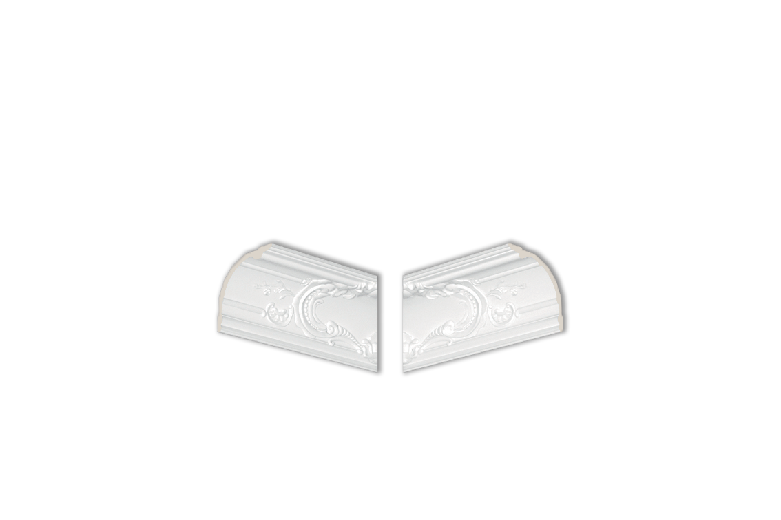 Die Z42 muss vor der Anbringung an der Decke geschnitten werden. Jedes Stück kann zur Verzierung von zwei Innenecken verwendet werden. Darüber hinaus kann die Z42 mit der geradlinigen Z40 oder der verzierten Z41 Leiste kombiniert werden. Dank ihres dekorativen und eleganten Designs eignet sie sich gut für traditionelle, moderne und extravagante Innenräume. Das im Stil der Barockarchitektur entworfene Eckstück ist reich verziert und sorgt für Aufsehen.