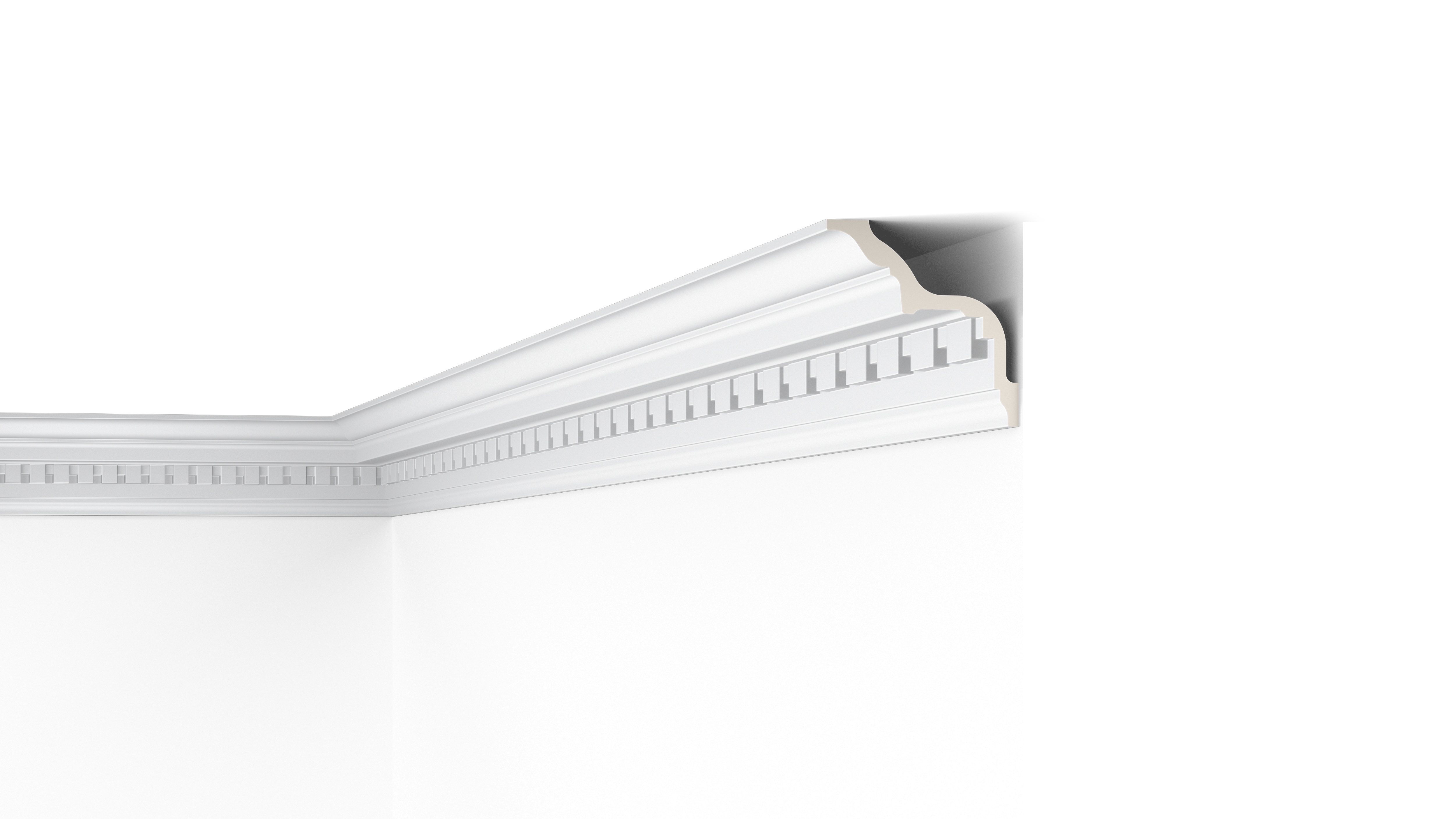Die attraktive und zeitlos schöne Deckenleiste Z5 ARSTYL® kann vielseitig eingesetzt werden und eignet sich so für eine Vielzahl von Einrichtungsstilen. Ihr elegantes, zinnenförmiges Design und ihre starken Linien verleihen Innenräumen einen klassischen und anspruchsvollen Look. Die aus Polyurethan gefertigte Z5 ARSTYL® sorgt für einen sanften Übergang zwischen Wand und Decke und kann in Feuchträumen wie Badezimmern und Küchen eingesetzt werden.