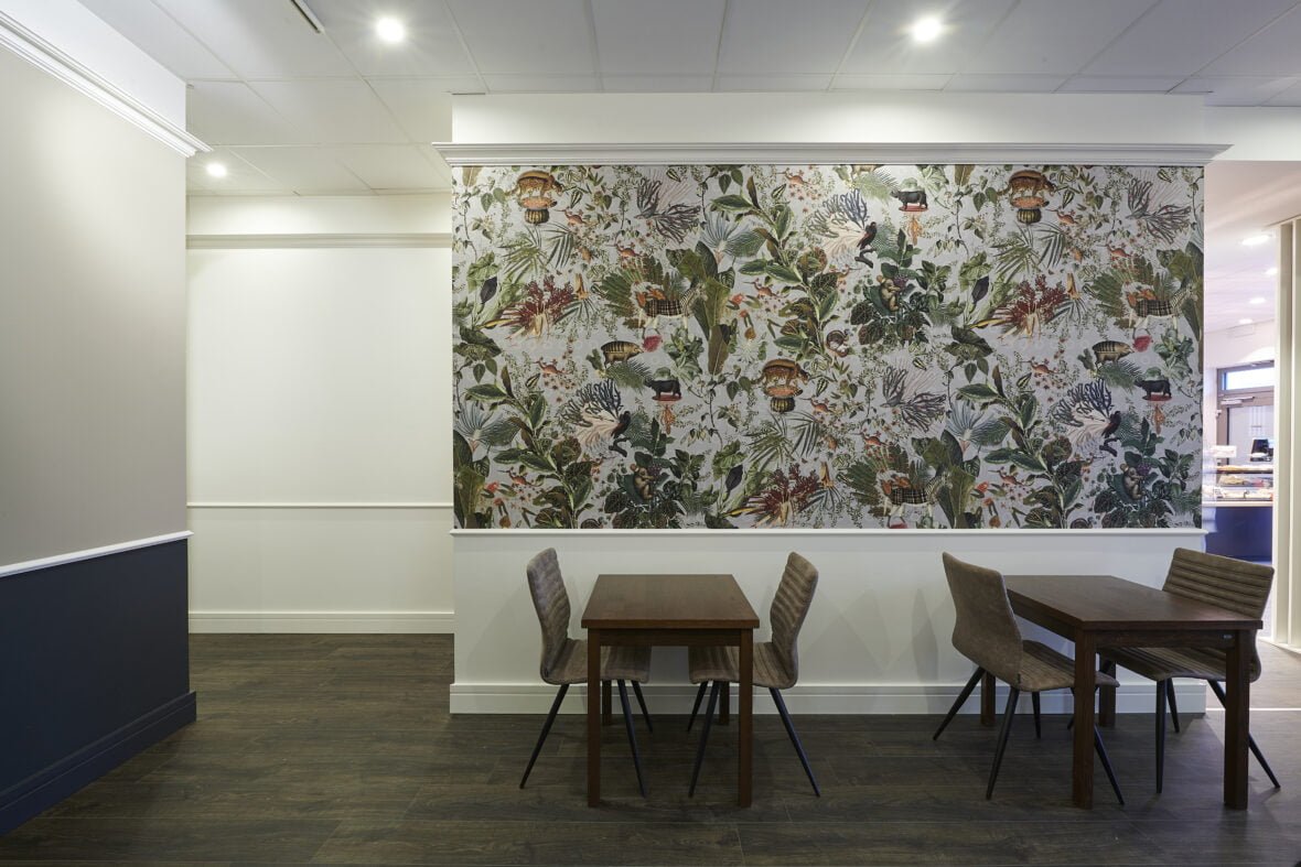 Das Geheimnis liegt in den Details: Sorgfältig ausgewählte Zierleisten setzen Bäckerei und Café gekonnt in Szene und laden zum Verweilen ein. Die Wahl für die Details der Innenausstattung fiel dabei auf die Leisten der Produktreihen A1 NOMASTYL®, WL1 WALLSTYL® und FD15 WALLSTYL®.