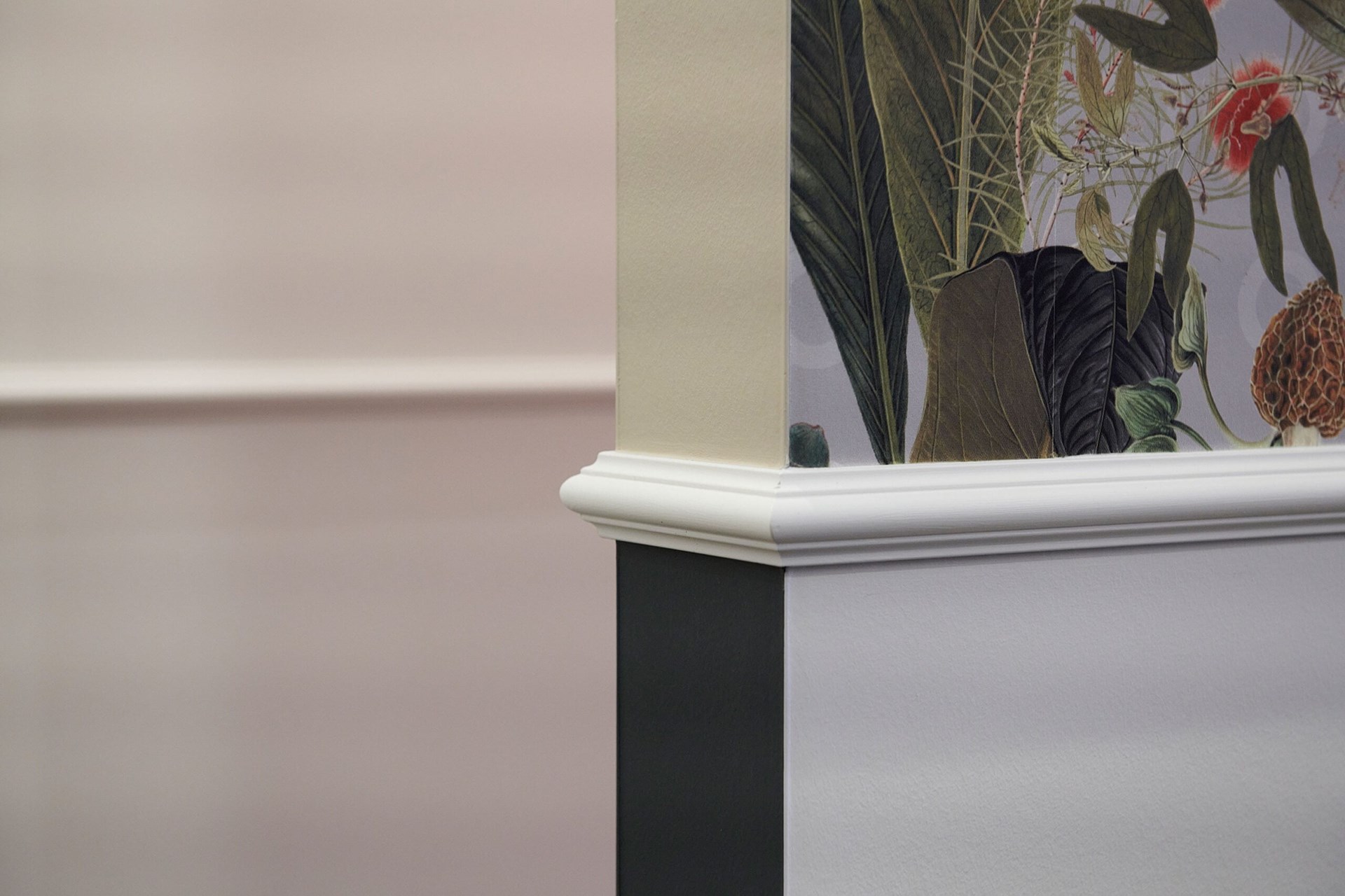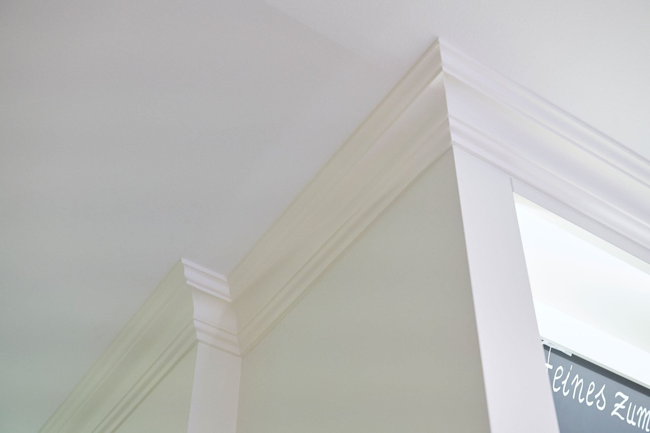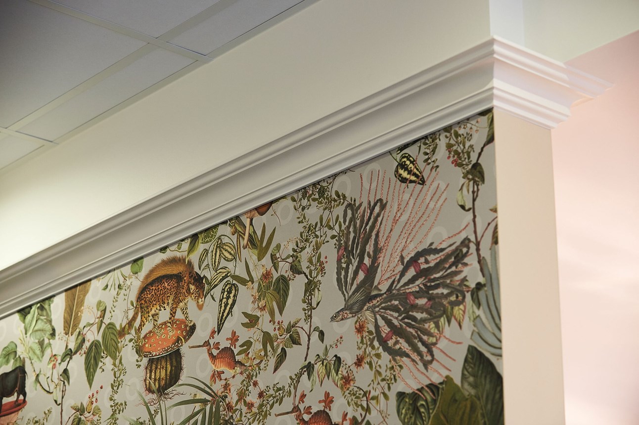 Das zeitlose und klassische Design der A1 NOMASTYL® Deckenleisten schafft einen sauberen und edlen Übergang von der Decke zur Wand. Mit seinen ausgeprägten Linien und Rundungen entstehen interessante Schattenspiele. Die Deckenleisten eignen sich auch wunderbar, um die stilvoll illustrierte Tapete an der oberen Kante einzurahmen.