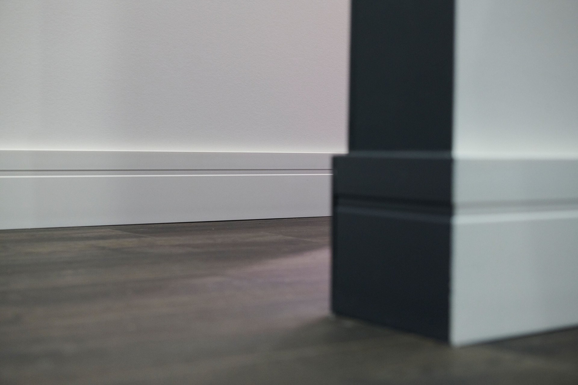 Die hohen Sockelleisten FD15 WALLSTYL® runden die Gestaltung zum Boden hin perfekt ab. Sie wirken elegant und modern. Wie alle Sockelleisten von NOËL & MARQUET sind sie stoß- und wasserfest.