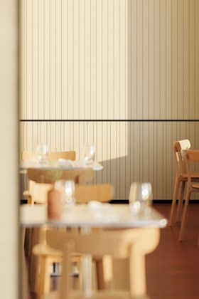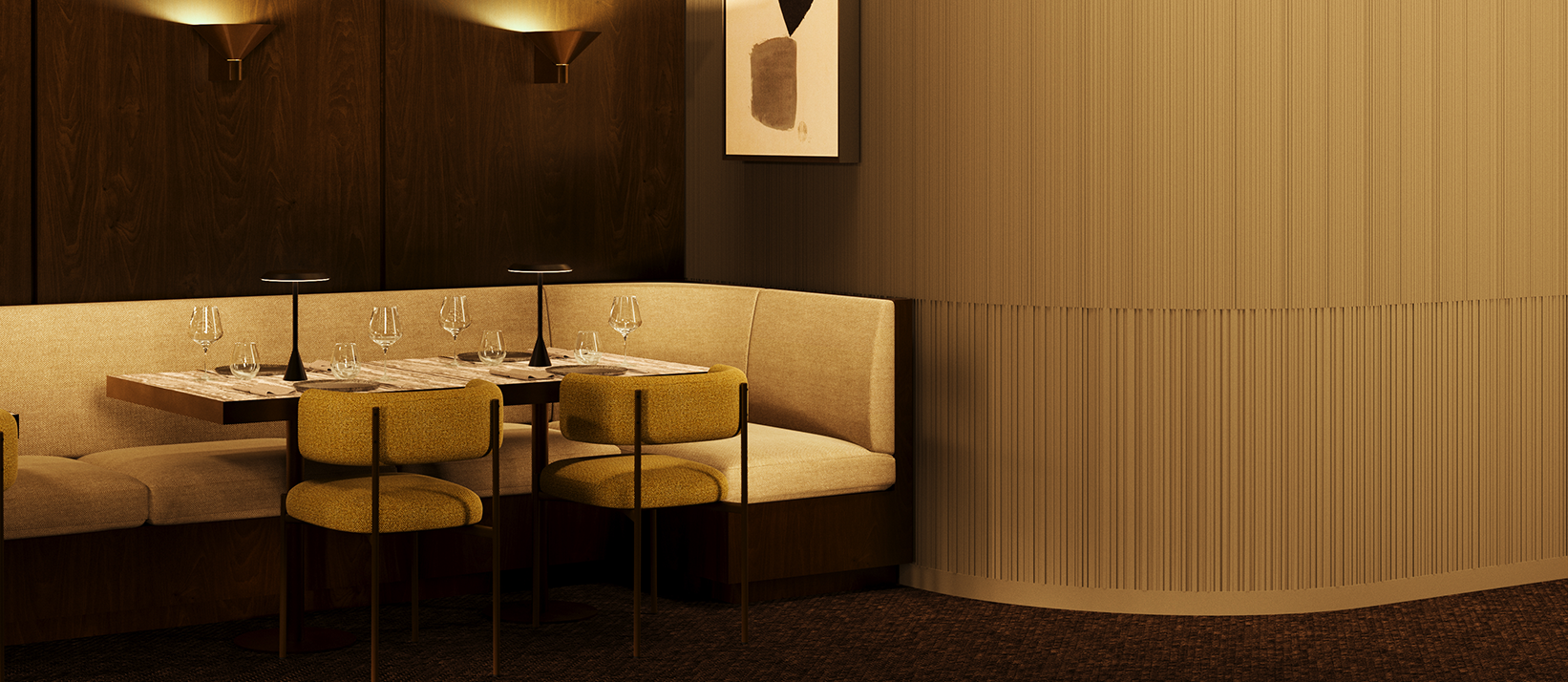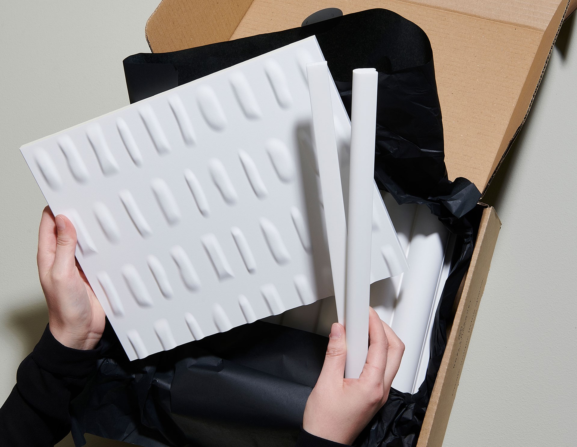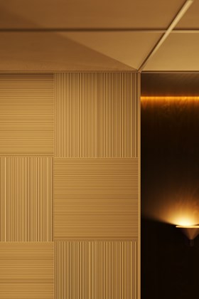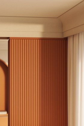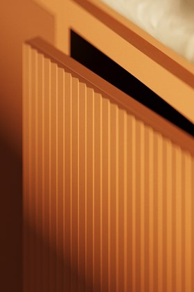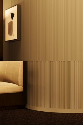 Inspiriert von den Sonnenstrahlenfalten der Haute Couture zeichnen sich die PLISSÉ-Wandpaneele durch klare Falten und starke Linien aus, die für raffinierte Bewegung und Klarheit sorgen. Ideal für ruhige, minimalistische Innenräume.