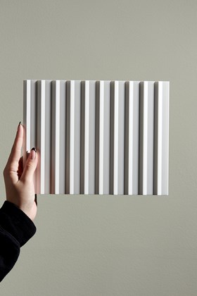 Klare Geometrie und vertikale Linien, die an skandinavische Schlichtheit erinnern. LATTE MIX sorgt für dynamische Asymmetrie in modernen Kompositionen, während LATTE S und L zeitlose Eleganz für traditionelle Wandverkleidungen oder „Shiplap“-Anwendungen in voller Höhe bieten.