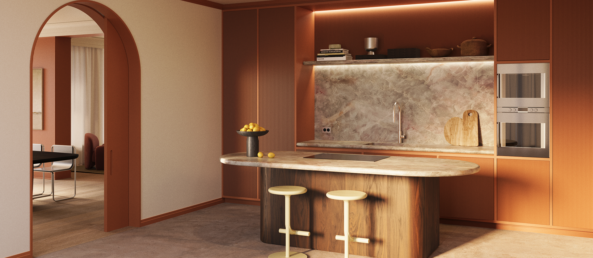 Ein skulpturales Zusammenspiel konkaver „Halbmond“-Motive, das einen ruhigen architektonischen Rhythmus schafft. Das ausdrucksstarke MEZZALUNA S lässt sich mit dem minimalistischeren MEZZALUNA L zu vielschichtigen, charaktervollen Kompositionen kombinieren.
